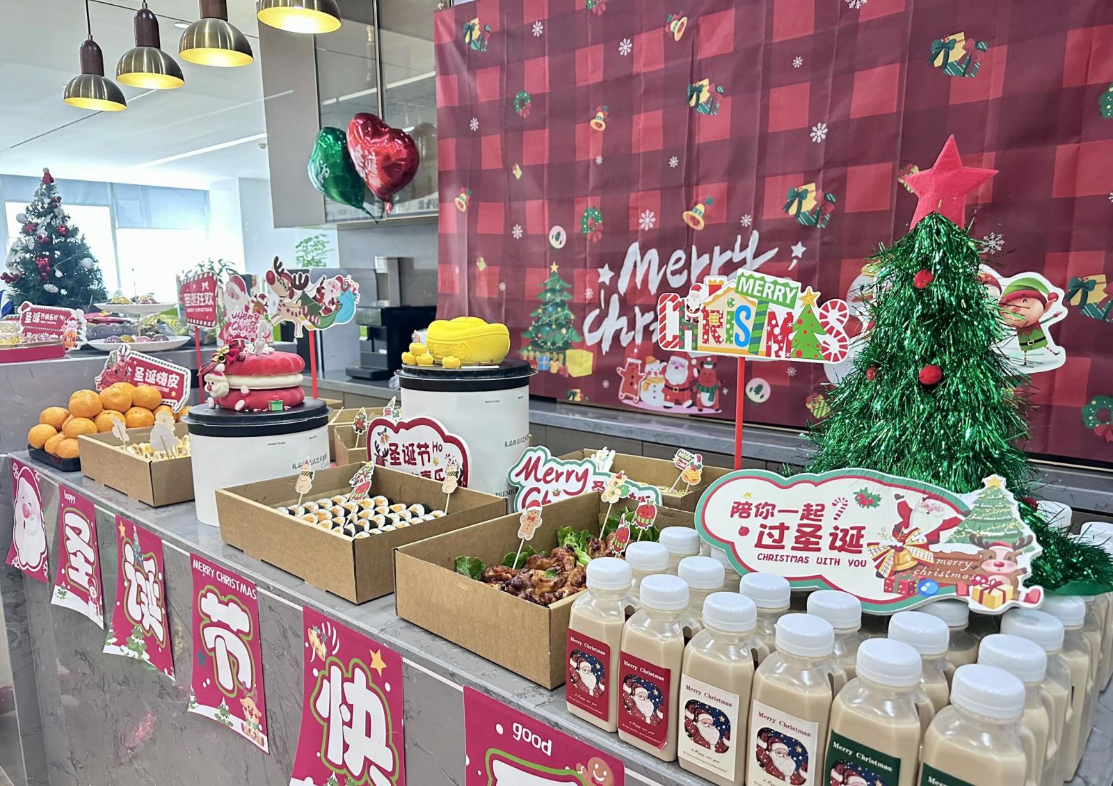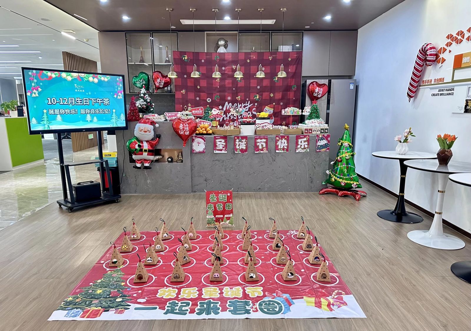 The sound of keyboards subsided, and the air was filled with the smells of black tea, cake, and sushi, as well as soft laughing. Under the Christmas tree, there were gifts to be won in a ring throw game.